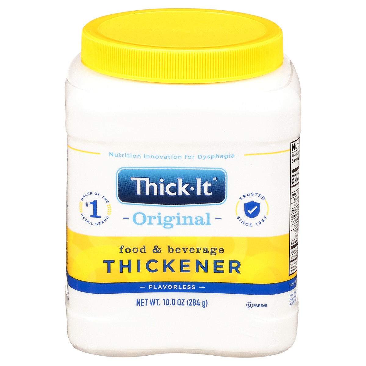 Flavorless. Dietary Friendly: Gluten free and Kosher Pareve. Nutrition Innovation for dysphagia. No. 1 retail brand. Trusted since 1987. Thick-It: First in science, first in care. Thick-It Original Fo…