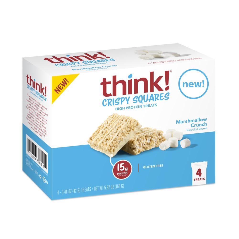 Rediscover the joy of a classic marshmallow treat with a nutritious twist in Think! High Protein Crispy Squares Marshmallow Crunch. Each bar delivers 15 grams per serving of protein and only 150 calor…