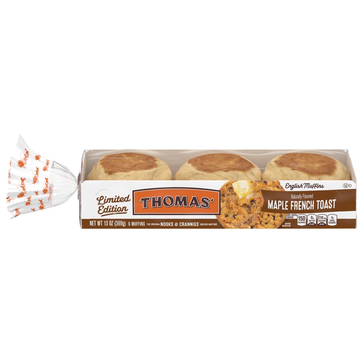Our unique flavor Limited Edition Maple French Toast English Muffins are made with real maple syrup and only 150 calories. These English muffins are a sweet way start to any day.