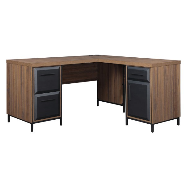 Thomasville Alderbrook 60""W L-Shaped Corner Desk With Integrated Power Outlet, Walnut/Matte Black