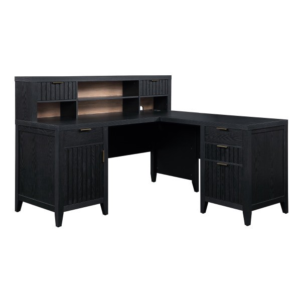 Thomasville Rivington 60""W L-Shaped Corner Desk & Hutch With Integrated Power Outlet, Raven Black