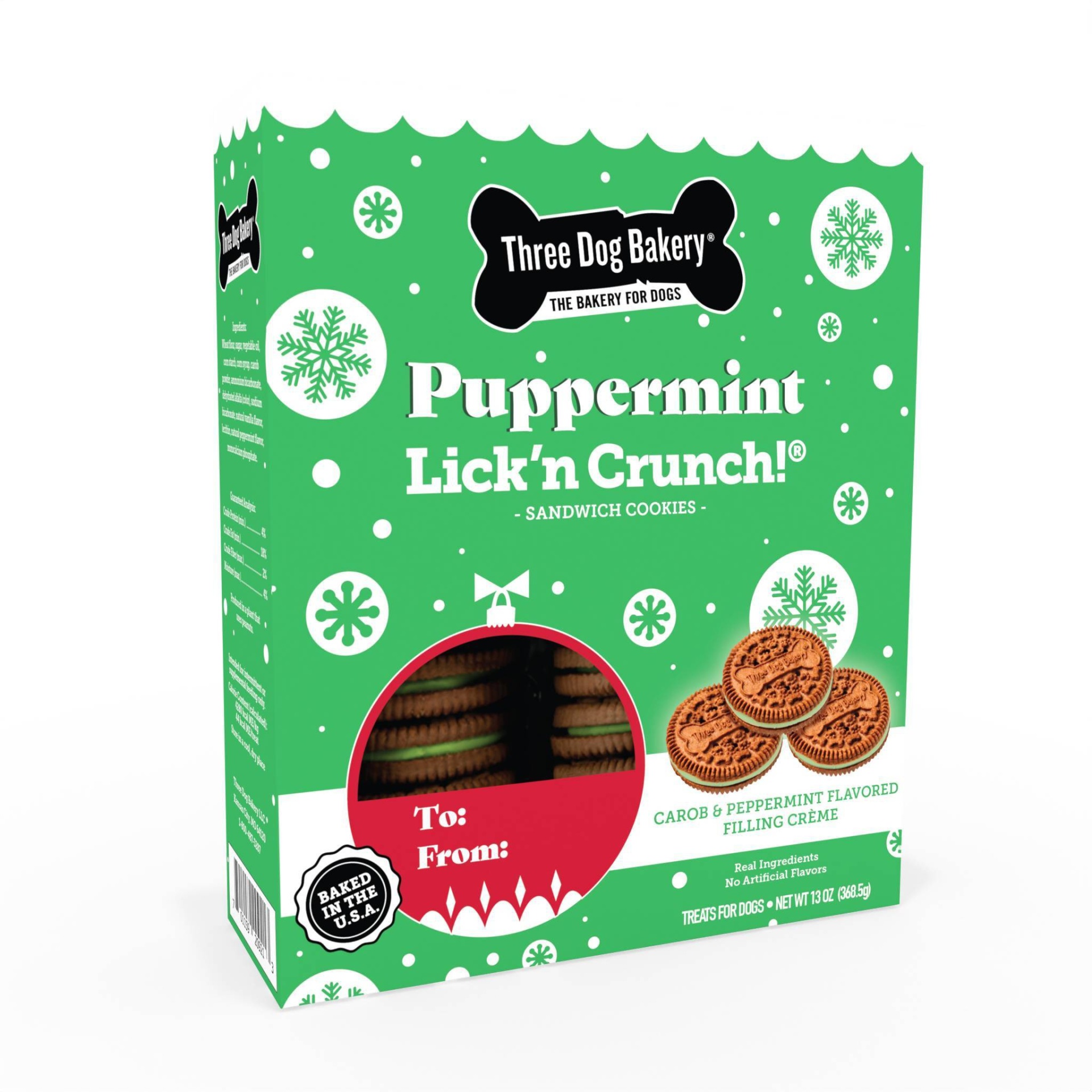 Three Dog Bakery Holiday Carob and Peppermint Lick'n Crunch Cookie Dog Treats - 13oz
