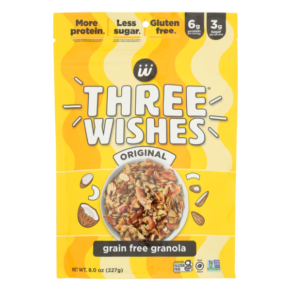 Brought to you by the same hungry family that created Three Wishes cereal, our brand-newgranola was dreamed up with the same three wishes in mind. Gluten-free and packed withprotein, not sugar, our Or…