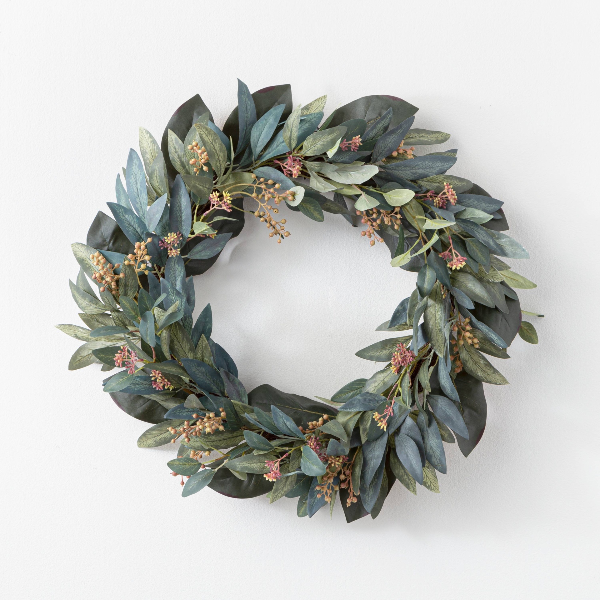Threshold designed w/Studio McGee 26" Artificial Olive/Eucalyptus Leaf with Berry Wreath - Threshold designed with Studio McGee