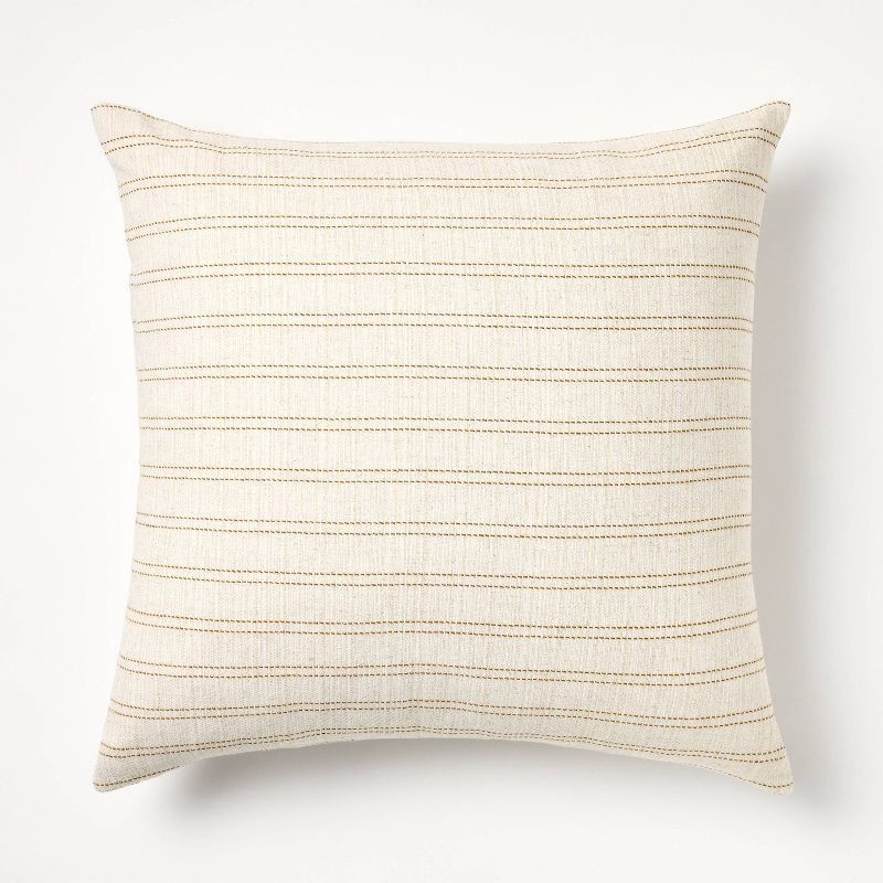 Elevate your seating arrangement or bedding with this Woven Striped Throw Pillow from Threshold™ designed with Studio McGee. The decorative pillow is adorned with a twin-striped pattern in dark tan on…