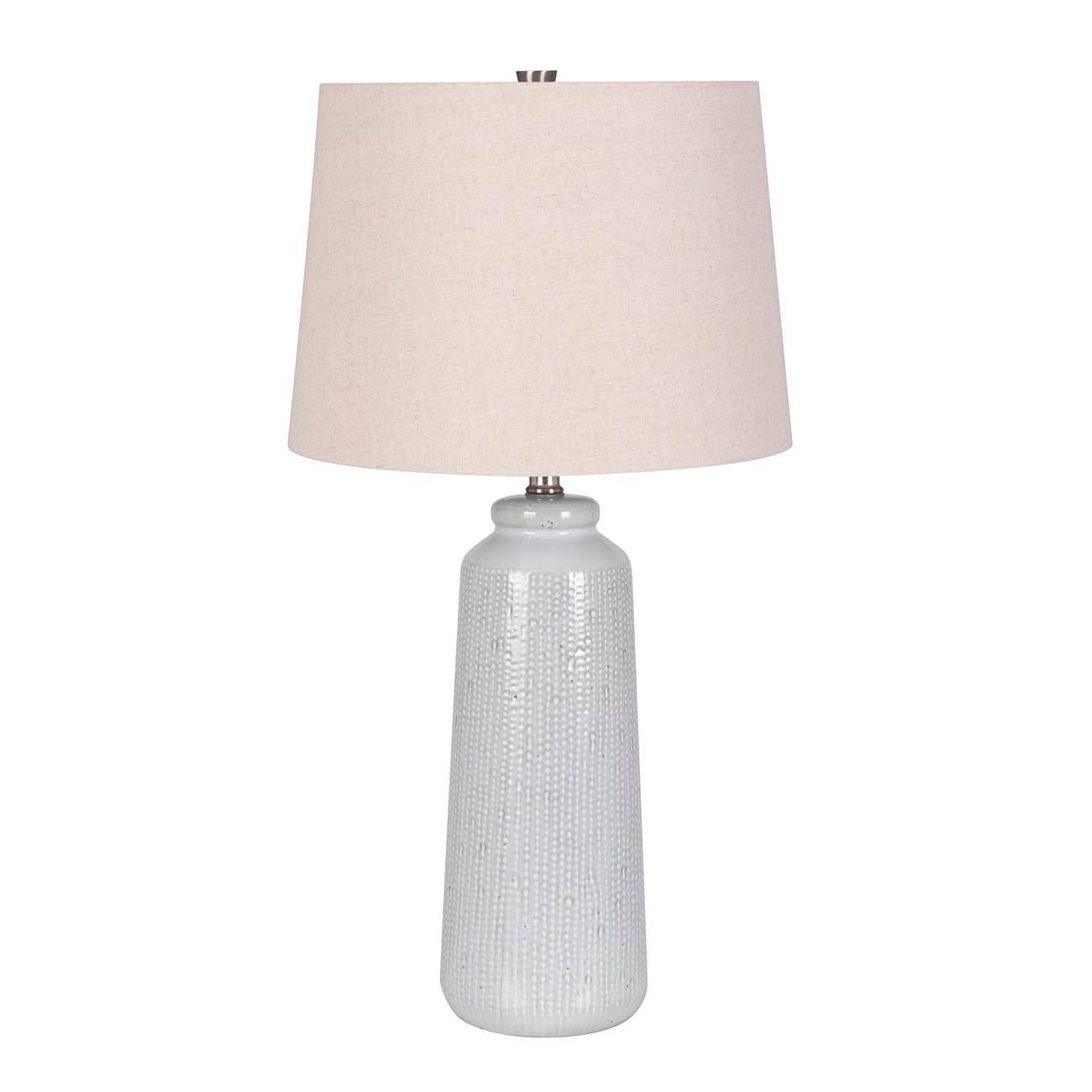 Illuminate your space in modern style with the Large Ceramic Table Lamp (Includes LED Light Bulb) from Threshold. A beautiful embossed texture with a glazed finish accents the bottle-shaped ceramic ba…