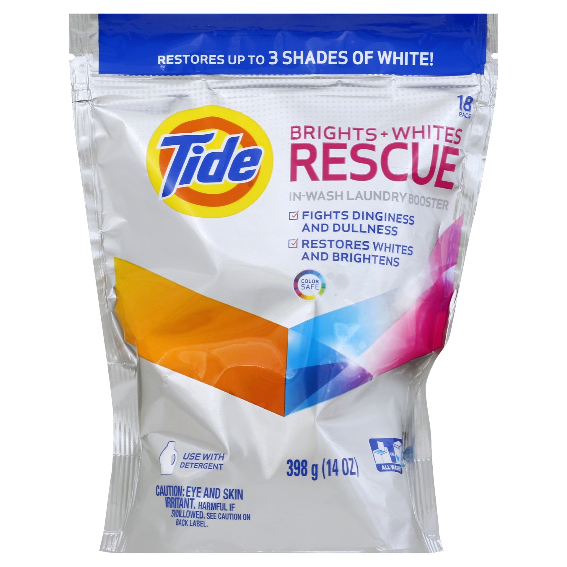 Add detergent. Add rescue pac to drum. Add clothes. Start washer.