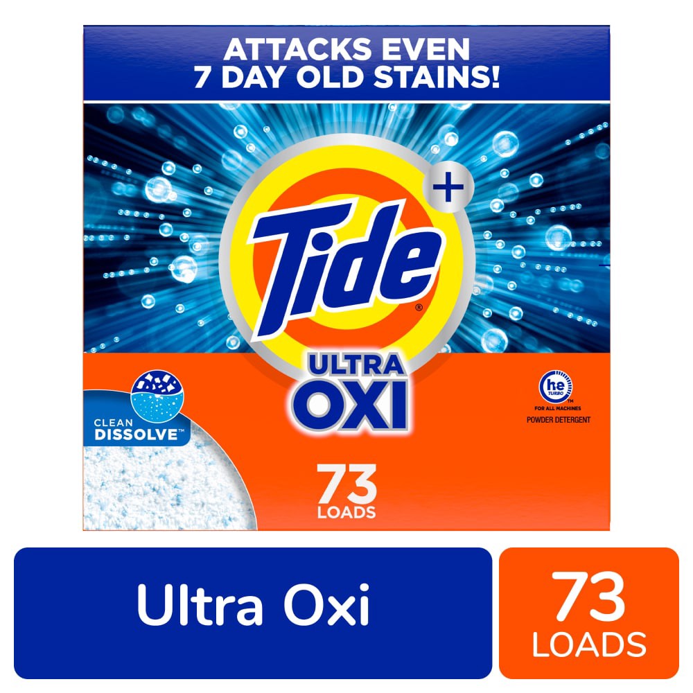 Tide Ultra OXI laundry detergent powder. Better Cleaning with Ultra OXI Power for your money*. Tide Ultra OXI Powder targets tough set-in odors deep down in clothing fibers for a deep clean. With the …