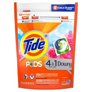 Tide PODS + Downy laundry detergent pacs offer the Tide clean you love, now with Downy Fabric Protect Stretch. Use these 4-in-1 laundry pacs to clean, protect colors, fight stains and protect your clo…