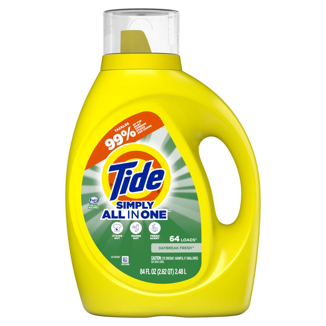 Experience the right clean at just the right price with Tide Simply All-In-One. Tide Simply All-In-One Liquid Laundry Detergent fights dirt and tough odours deep in the fibres of your clothes. That me…