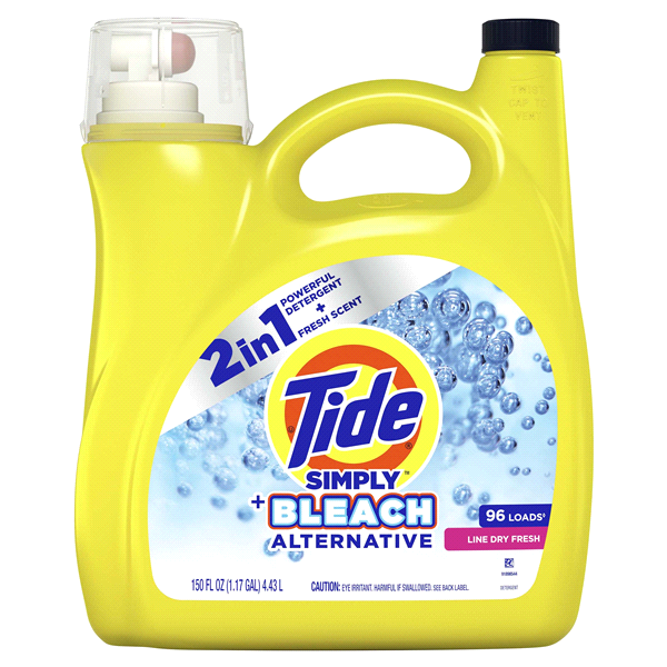 Tide Simply Bleach Alternative liquid laundry detergent provides 2x stain and odor fighting power at a great value. Its 2 in 1 solution combines powerful detergent for better clean and fresh scent for…