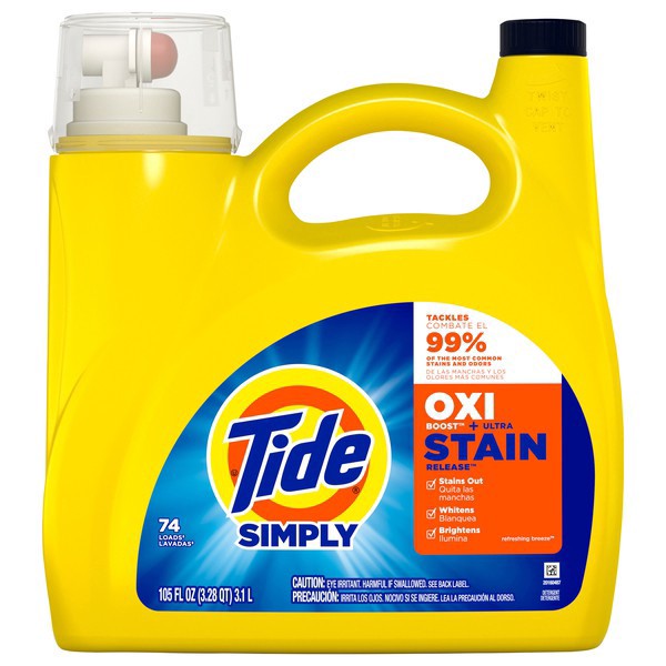 Get tough on tough stains with Tide Simply OXI Boost + Ultra Stain Release. Stubborn stains are no match for this ultra-powerful laundry detergent formulated with OXI Boost plus Ultra Stain Release. T…