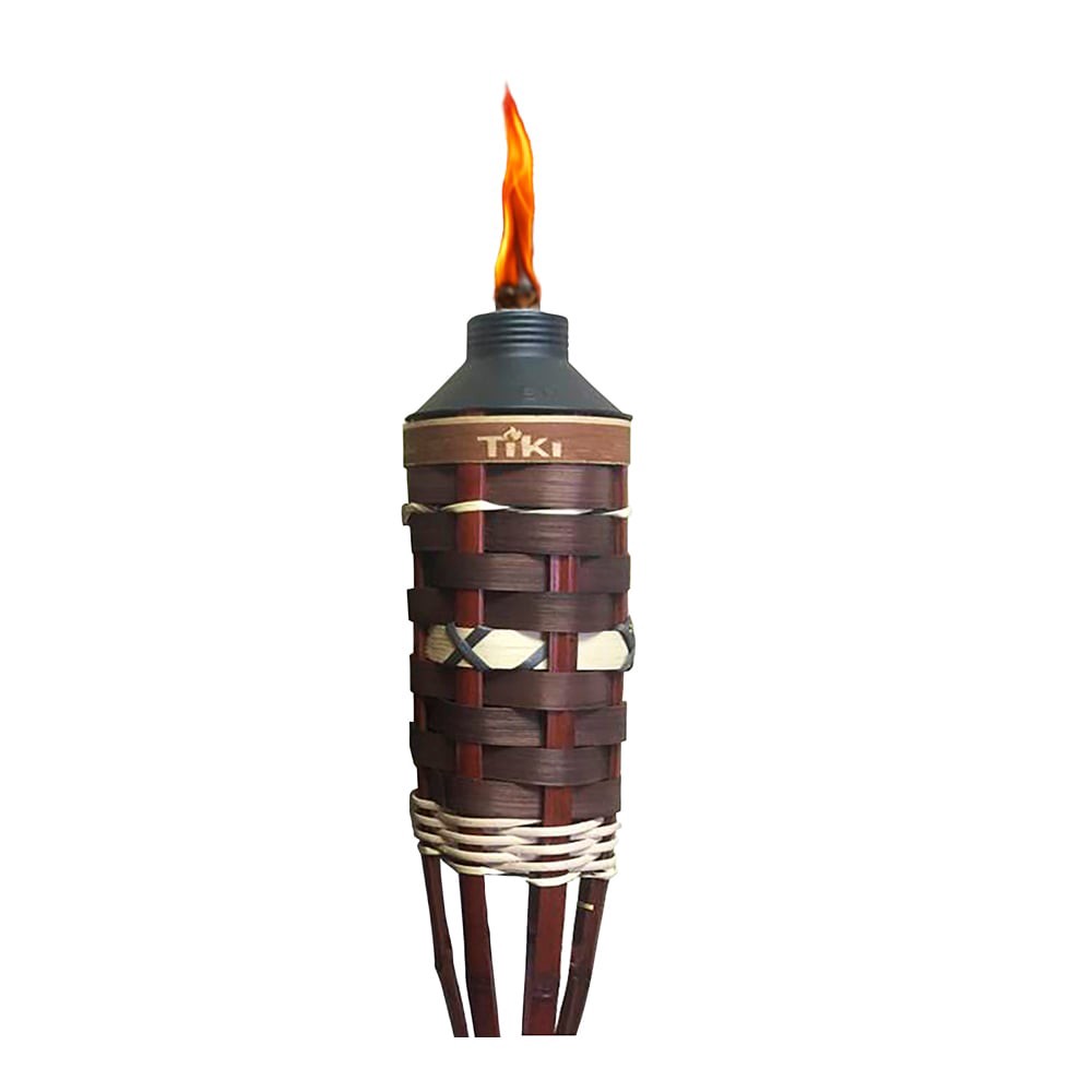 Sustainable bamboo construction with stained finish. Size: 60 in tall. Burns up to 5 hours with each 12-oz fill. Comes with an Easy Pour wide mouth canister and snuffer. For proven mosquito repellency…