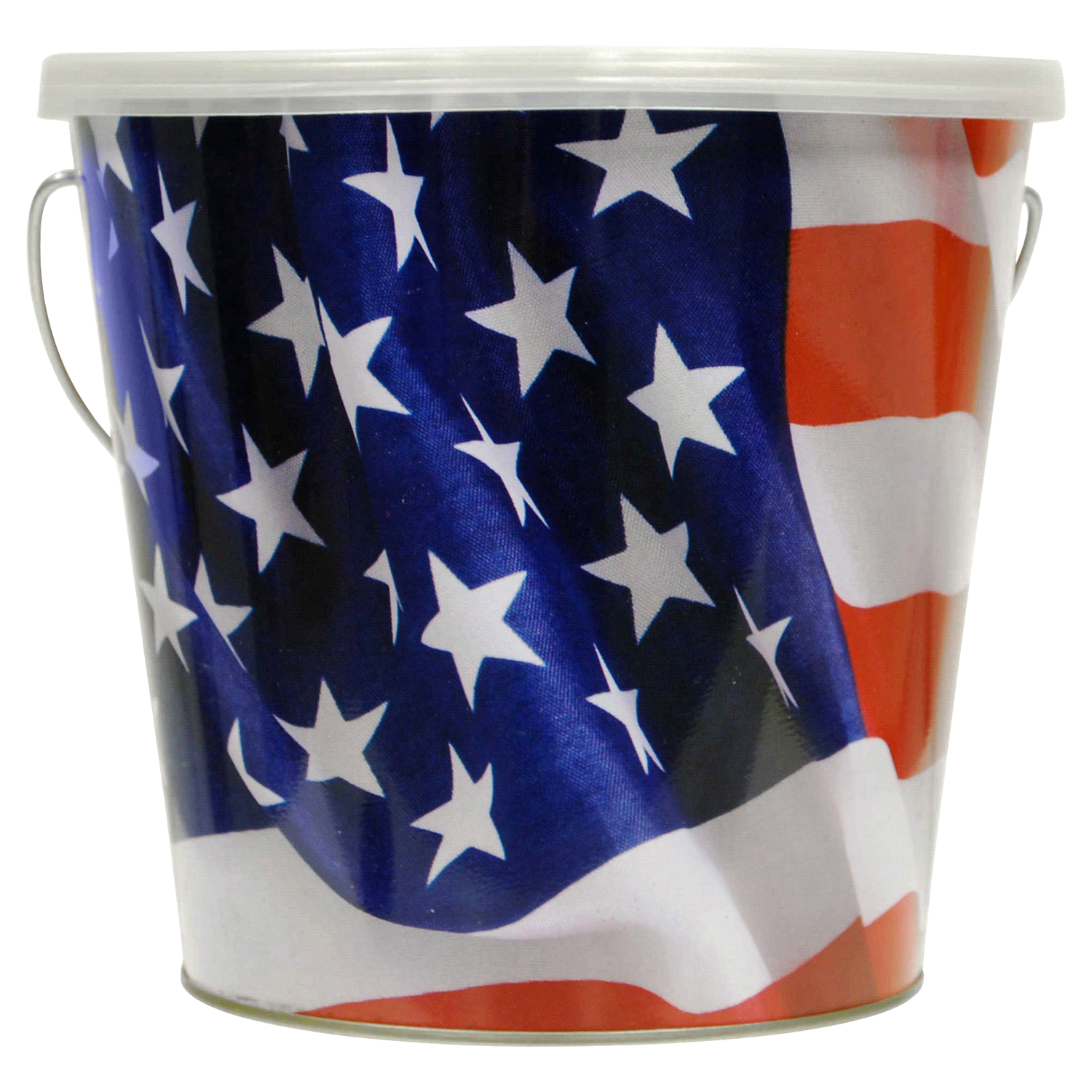 Decorative American Flag 16 oz. Citronella Wax Candle Bucket. Creates a warm glow in your back yard. The wax bucket can blend into your outdoor decor or serve as a centerpiece at your table.