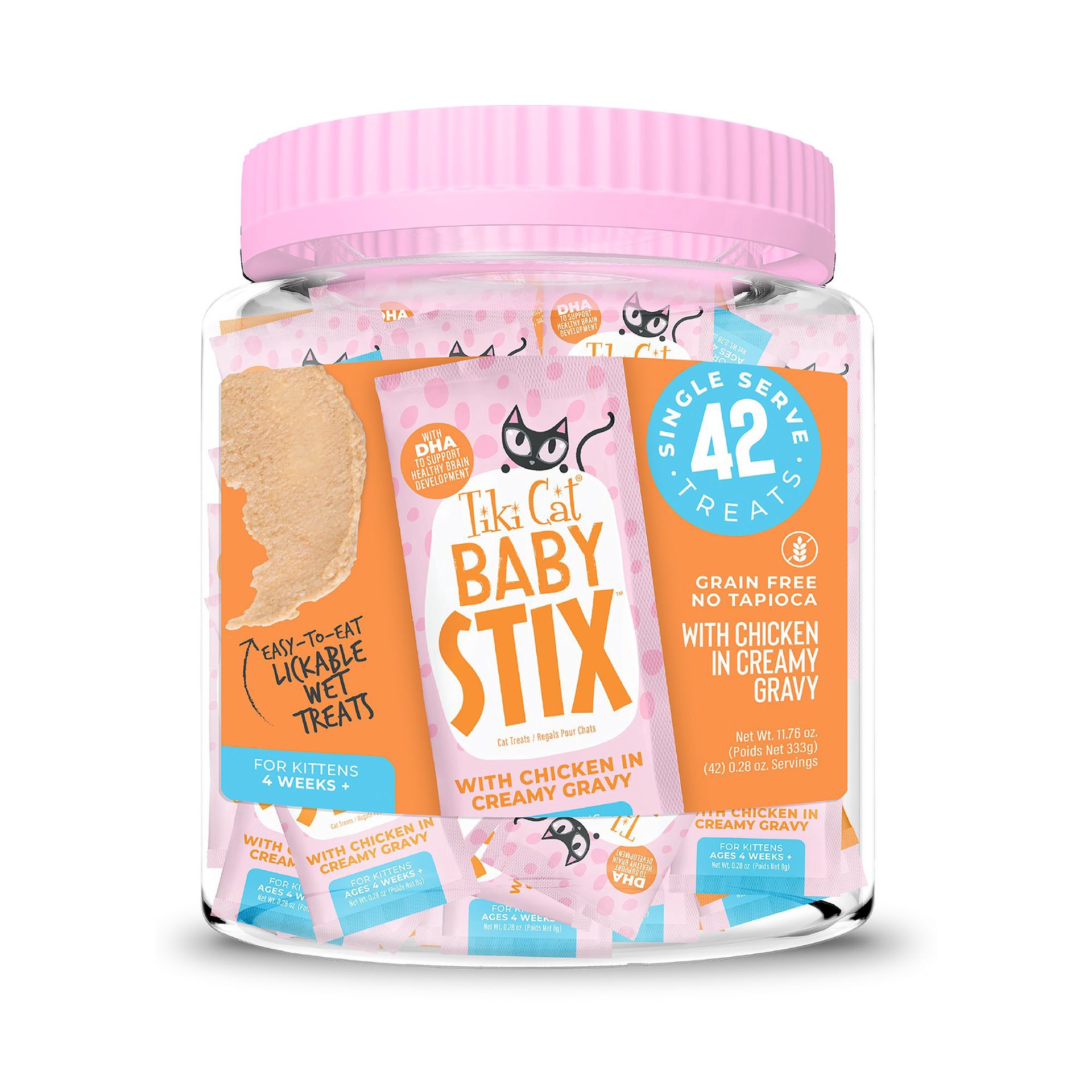 Tiki Cat Baby Stix Wet Cat Treats, Chicken in Creamy Gravy, 0.28 oz. Sachets (42 Count Jar)