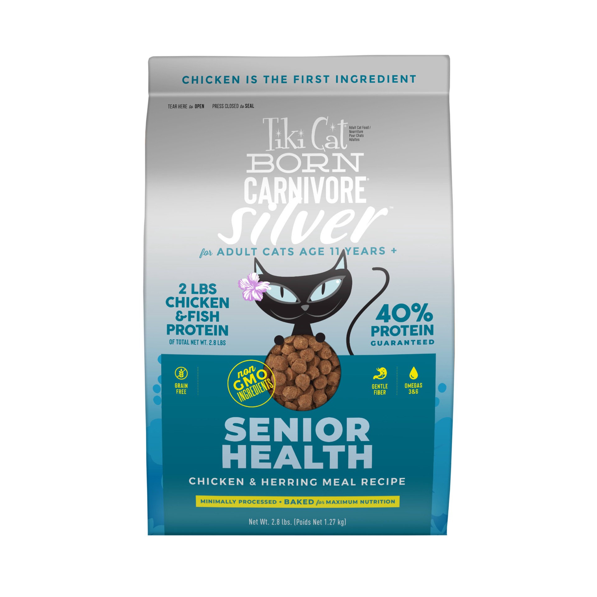 slide 6 of 6, Tiki Cat Born Carnivore Silver Senior Health Dry Cat Food for Senior Cats, Chicken & Herring Meal, 2.8 lbs. Bag, 2.8 lb