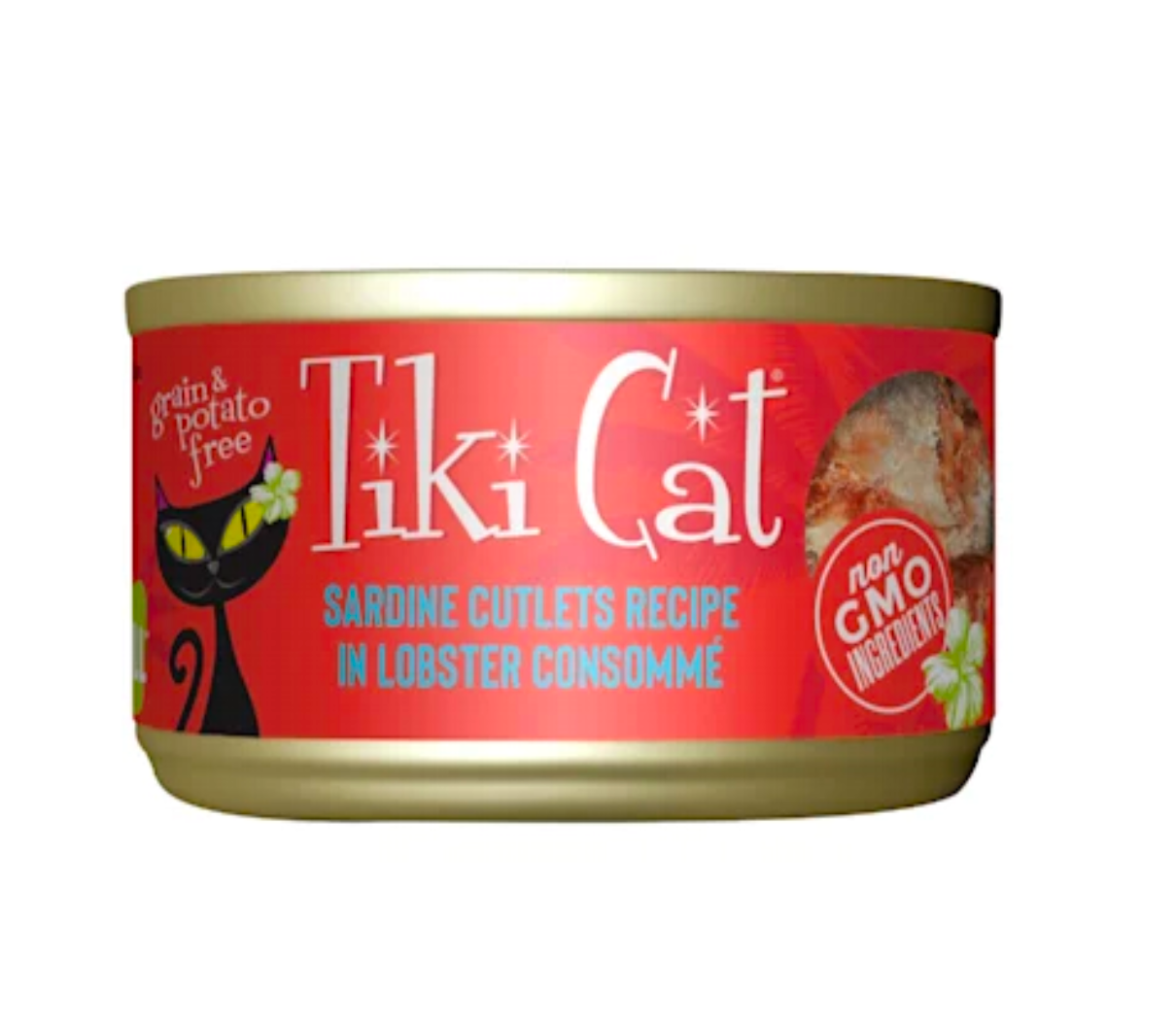 Tiki Cat Grill™ Wet Cat Food is indulgent flaked fish recipes, garnished with shellfish, like whole prawns, in a delicate consommé.