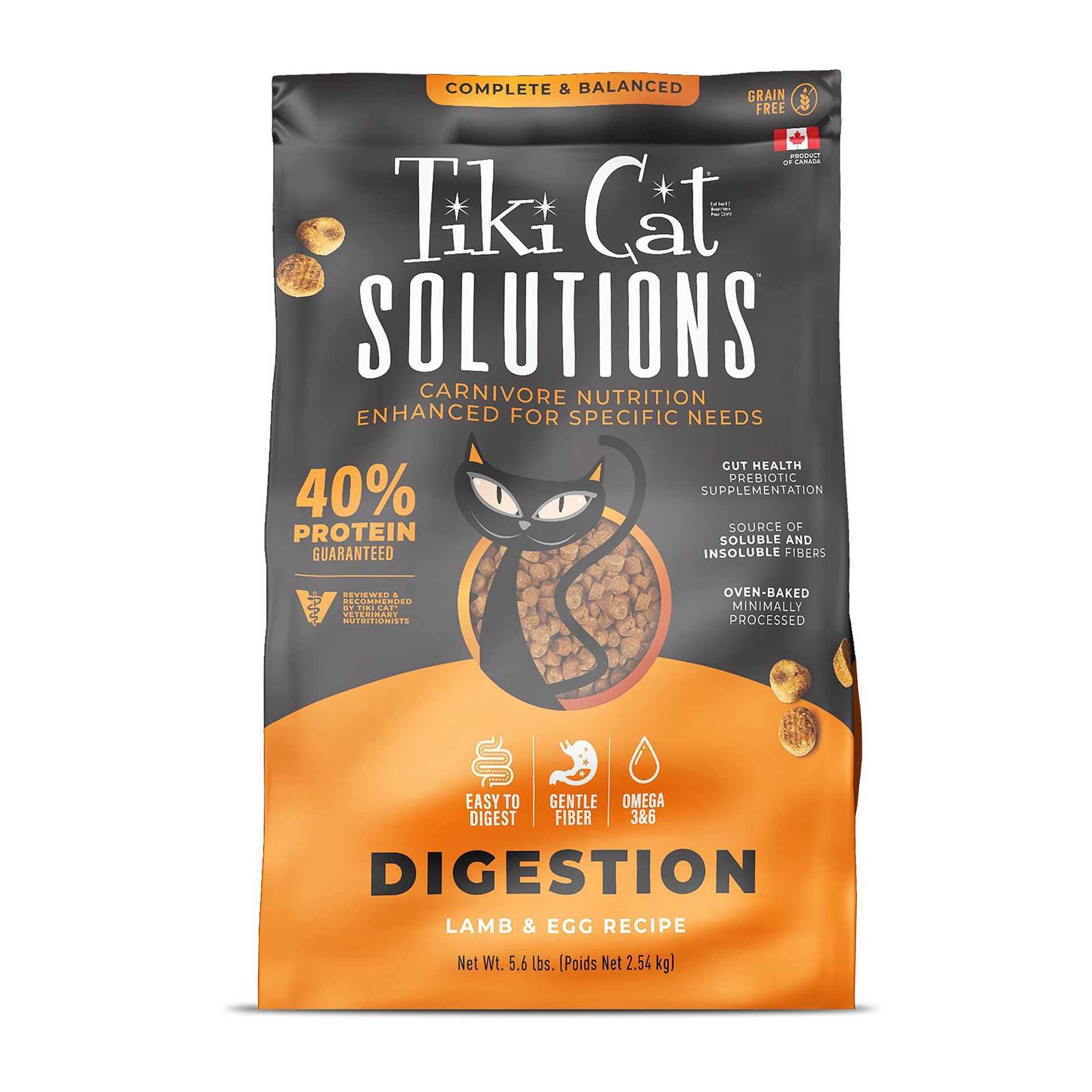 Tiki Cat Solutions Dry Cat Food, Digestion, Lamb & Egg, 5.6 lbs. Bag