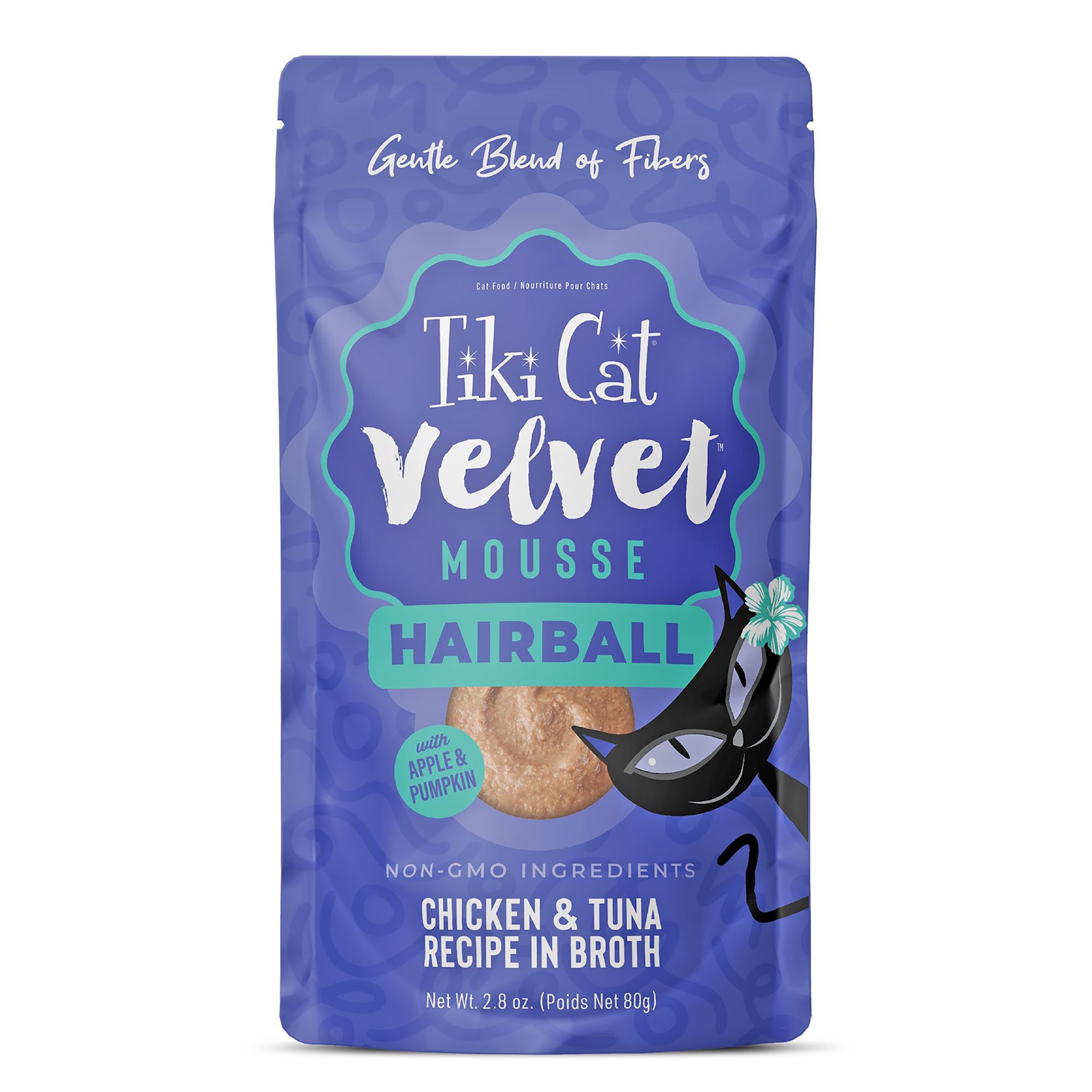 Supports Motility in the Digestive Tract. Tiki Cat(R) Velvet Mousse Hairball Recipe is a flavorful, easy-to-eat mousse that is complete and balanced and made with real chicken and tuna for a savory ta…