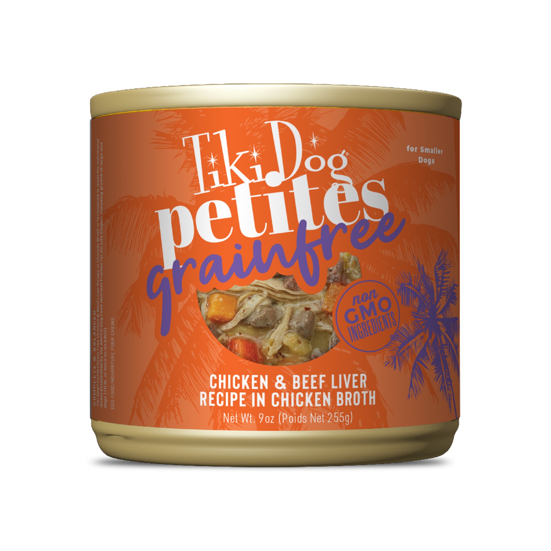 Tiki Dog Petites Grain Free Wet Dog Food, Chicken & Beef, 9 oz. cans (8 count) offers grain-free meals that include whole, shredded chicken & beef along with nutritious vegetables that are steamed fre…