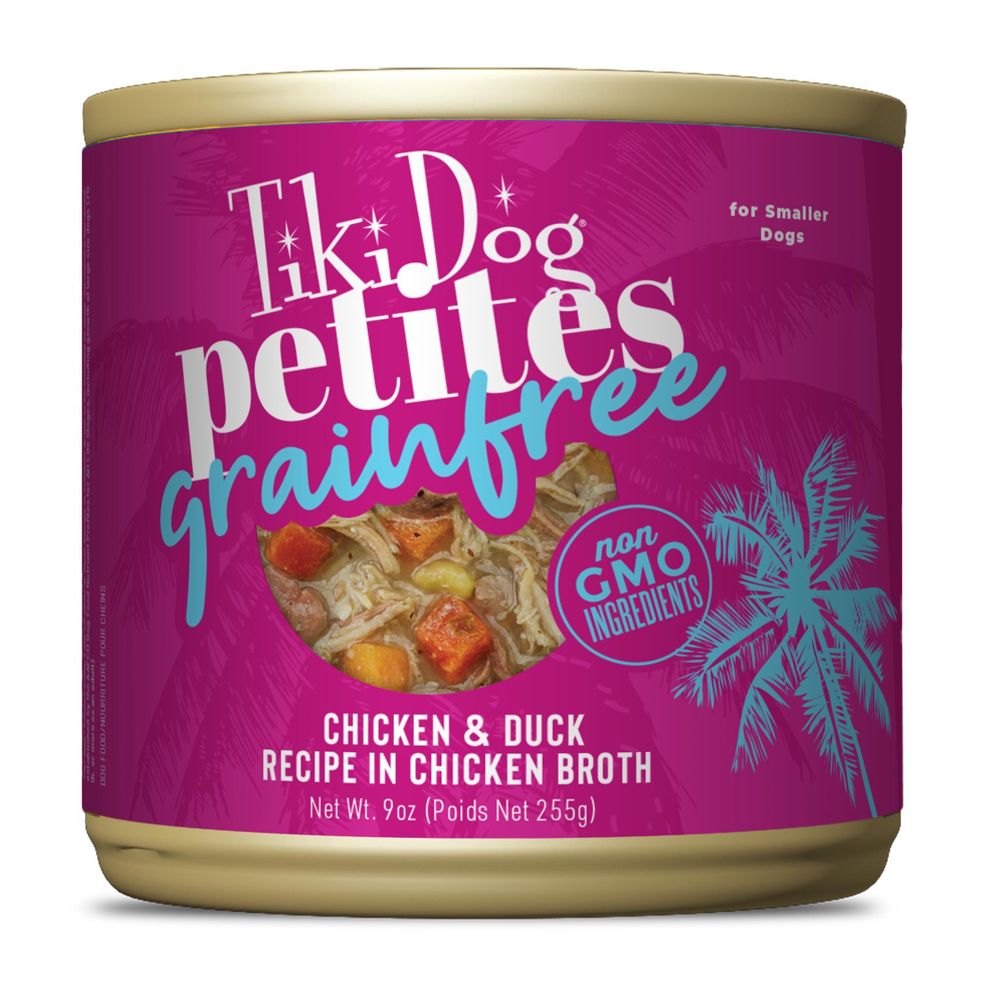 Tiki Dog Petites Grain Free Wet Dog Food, Chicken & Duck, 9 oz. cans (8 count) offers grain-free meals that include whole, shredded chicken and duck, flavorful organ meat and nutritious vegetables tha…