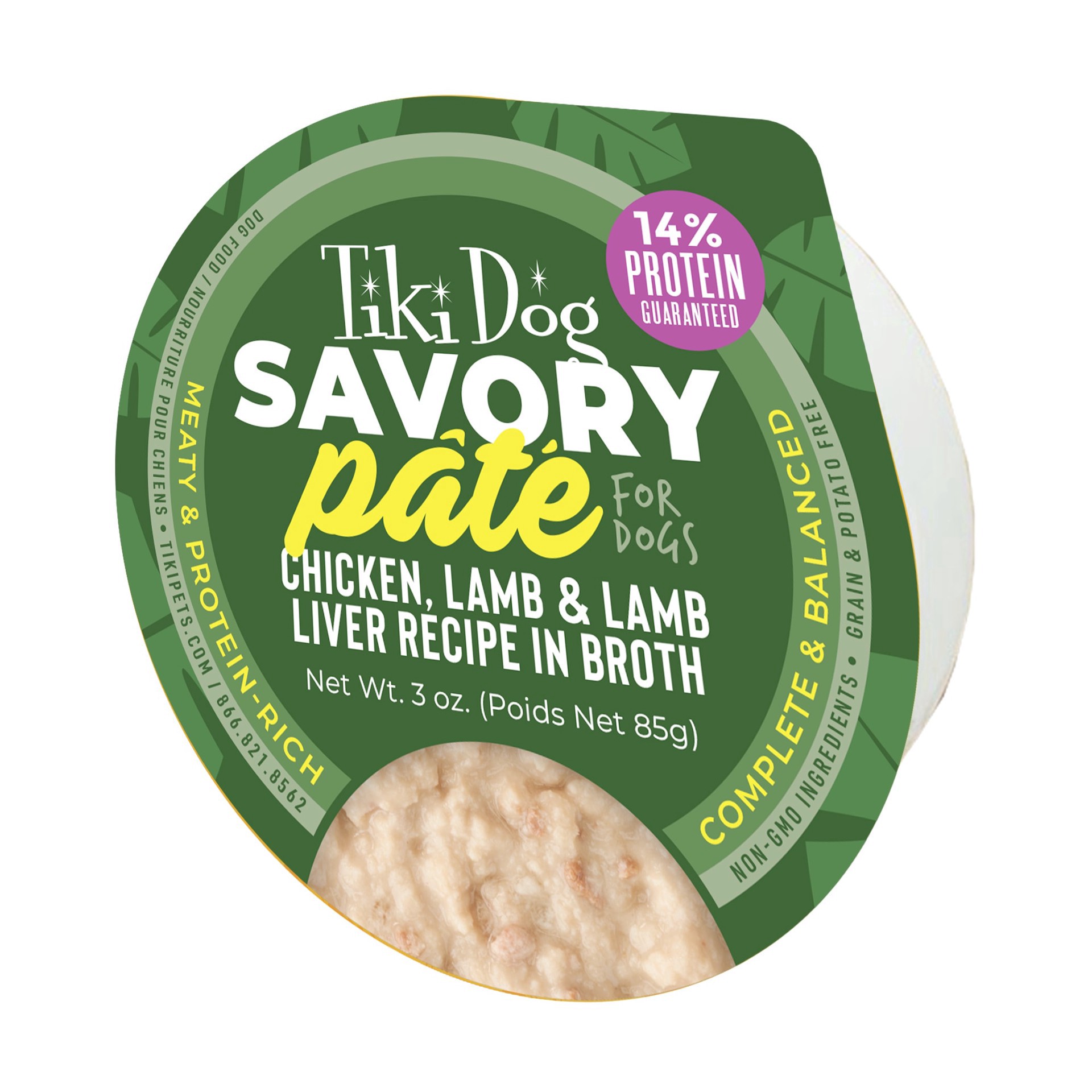 Tiki Dog(R) has the irresistible Flavors Your Dog Will Love. Tiki Dog Savory Pate is crafted from high-quality chicken, lamb and organ meat, providing your dog with the protein they crave. Nutrient-de…