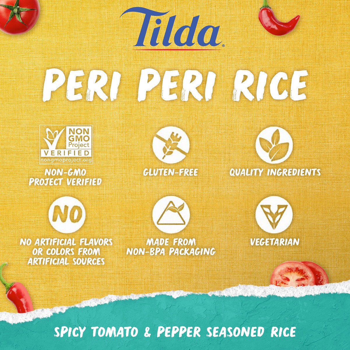 Tilda Peri Peri Rice is a delicious, ready-to-heat addition to any meal. Each 8.5 oz. package includes the Southeast African-inspired flavors of vibrant tomato and fiery pepper, adding a bit of spice …