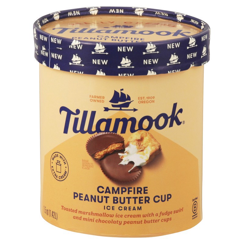 Taste your favorite camping treats all in one with Tillamook Campfire Peanut Butter Ice Cream. Featuring rich and creamy Tillamook Toasted Marshmallow Ice Cream with a fudge swirl and mini chocolaty p…