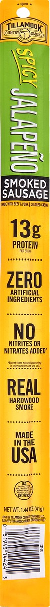 slide 8 of 13, Tillamook Country Smoker Spicy Jalapeno Smoked Sausage 1.44 oz,