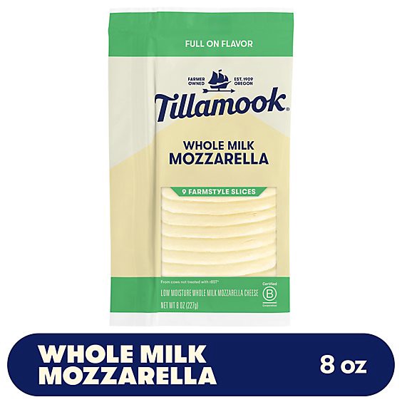 Tillamook Farmstyle Whole Milk Mozzarella Cheese Slices are premium thick slices that are full of flavor in every bite. Featuring rich whole milk goodness, this pre-sliced mozzarella adds a creamy fla…