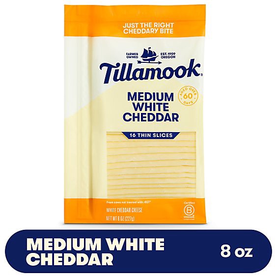 Tillamook Medium White Cheddar Thin Slices Cheese 16 Count - 8 Oz