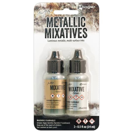 Tim Holtz Alcohol Ink Metallic Mixative Set, Gold & Silver