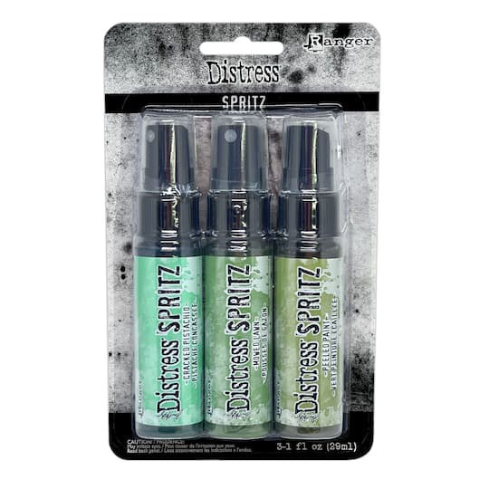 Buy the Tim Holtz Distress Spritz Green Pigment Spray Set at Michaels. These pigmented sprays come in three colors on the same side of the color wheel, but in different hues to help papercrafters craf…