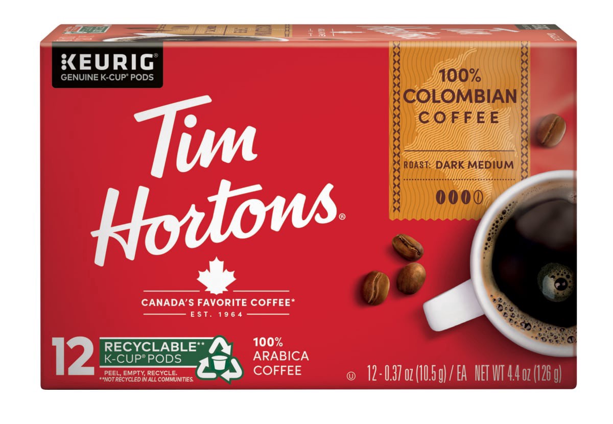 Tim Hortons 100% Arabica Dark-Medium Roast 100% Colombian Coffee 12 - 0.37 oz Each