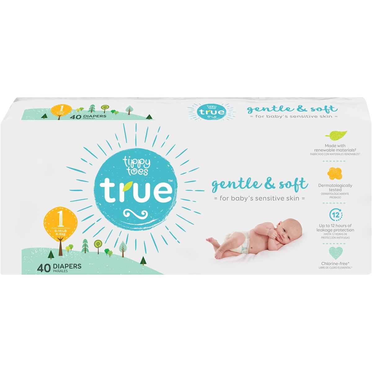slide 1 of 1, Tippy Toes Diaper Sensitive Jumbo Size 1, 40 ct