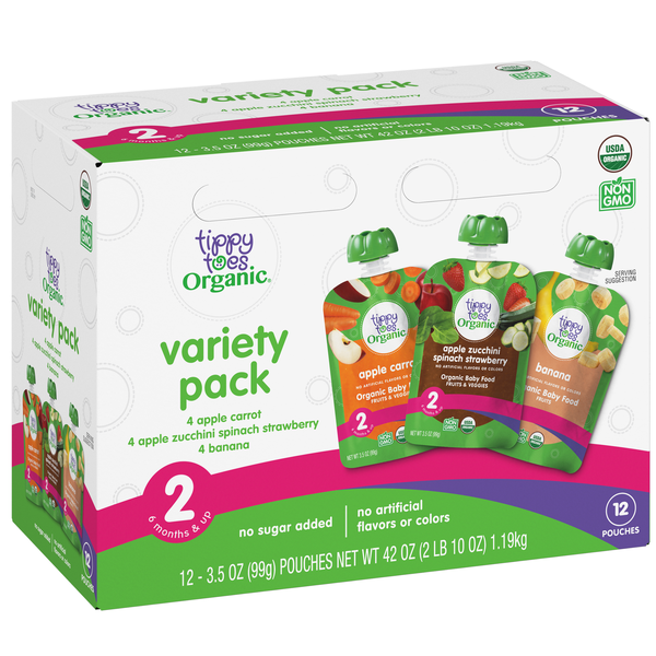 slide 1 of 1, Tippy Toes Organic 2 (6 Months & Up) Assorted Baby Food Pouch 12 ea, 12 ct