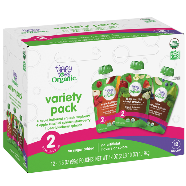 slide 1 of 1, Tippy Toes Organic 2 (6 Months & Up) Assorted Baby Food Variety Pack 12 ea, 12 ct
