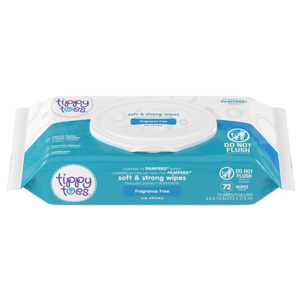 Tippy Toes Soft & Strong Fragrance Free Wipes 72 Each