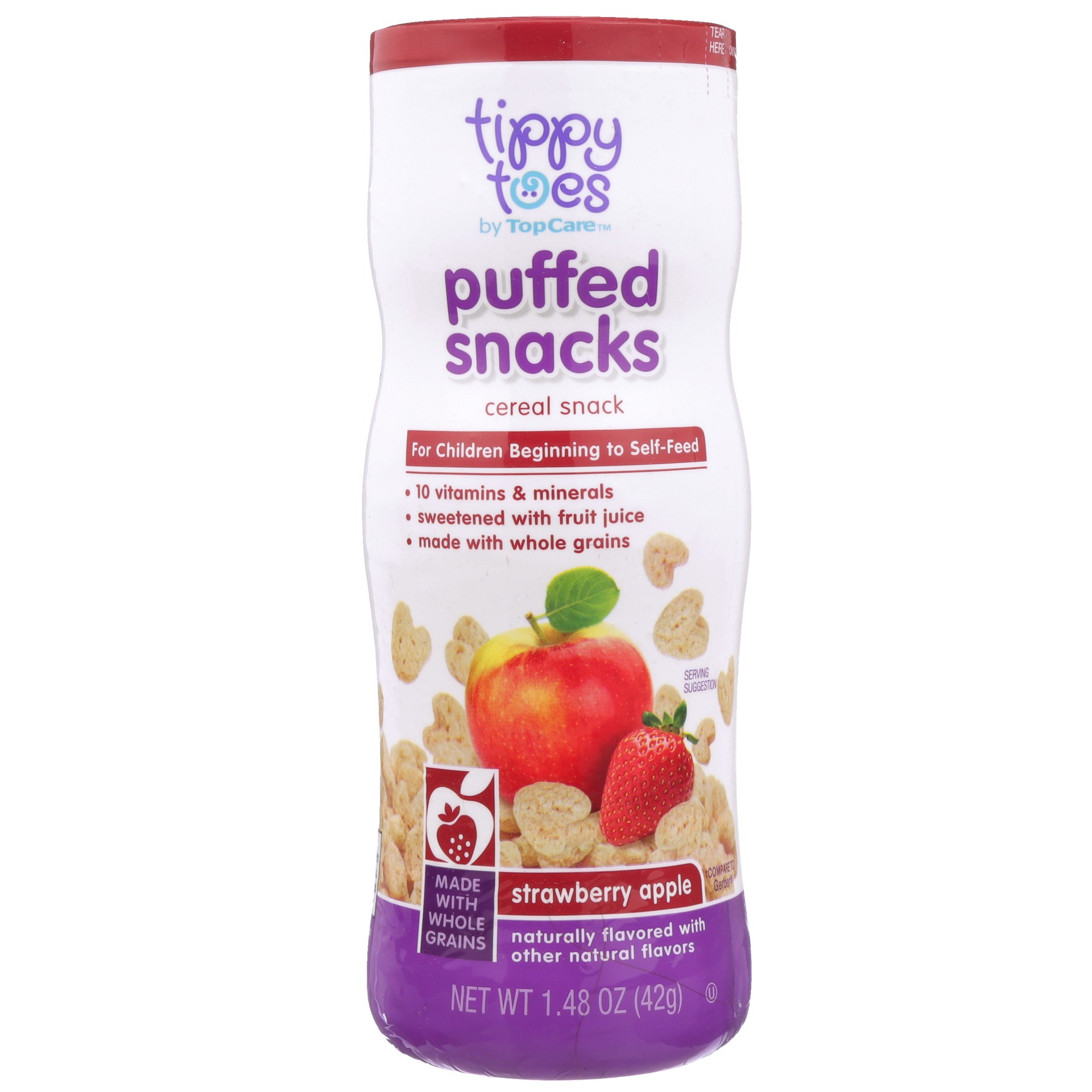 TEAR HERE TIPPY TOES PUFFED SNACKS ARE A GREAT WAY TO INTRODUCE YOUR CHILD TO NEW TASTES AND TEXTURES. CAUTION: DISCARD PLASTIC STRIP AFTER OPENING THIS PACKAGE IS SOLD BY WEIGHT, NOT BY VOLUME, AND M…
