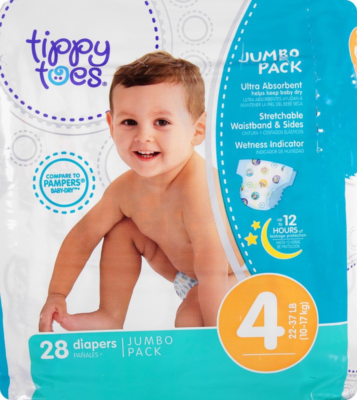 slide 2 of 8, Tippy Toes Size 4 Ultra Jumbo Diapers, 28 ct