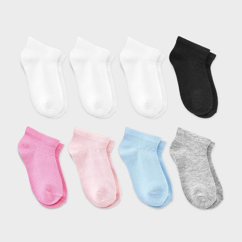 slide 1 of 3, Toddler 8pk Low Cut Socks - Dealworthy™ Black/Blue/Pink 4T-5T: Knit, Banded Cuff, Lightweight Fabric, 8 ct