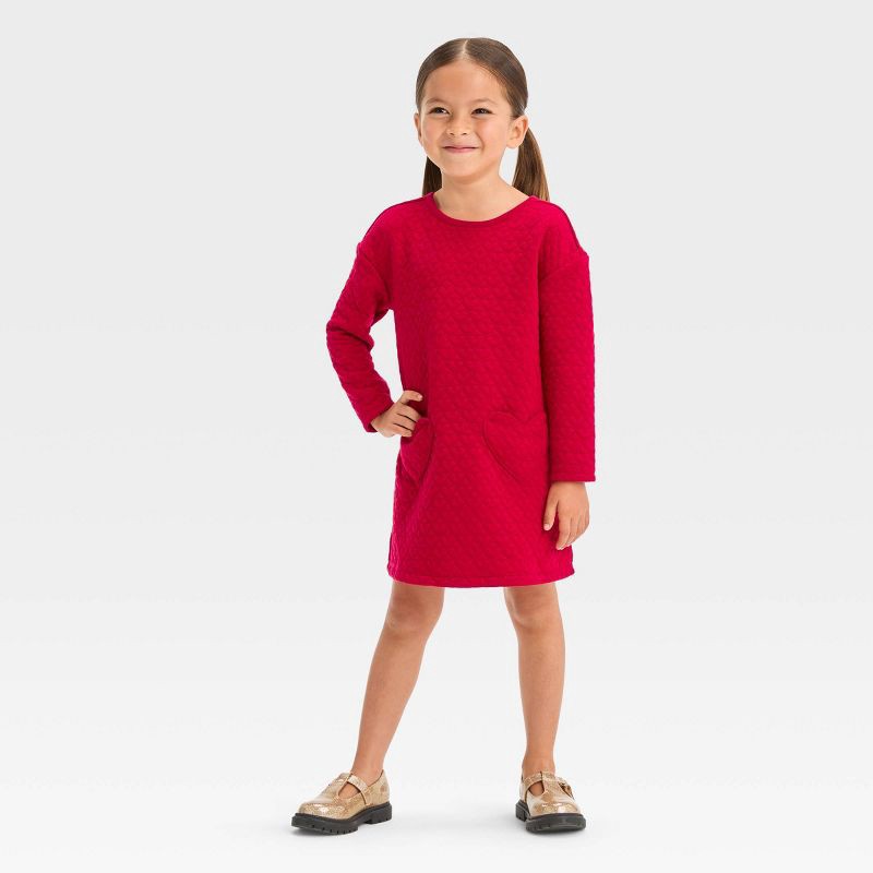 Add texture and cute style to your toddler's cool-weather closet with this Long-Sleeve Textured Dress from Cat & Jack. This long-sleeve dress in a solid color features a casual round neckline and a ja…