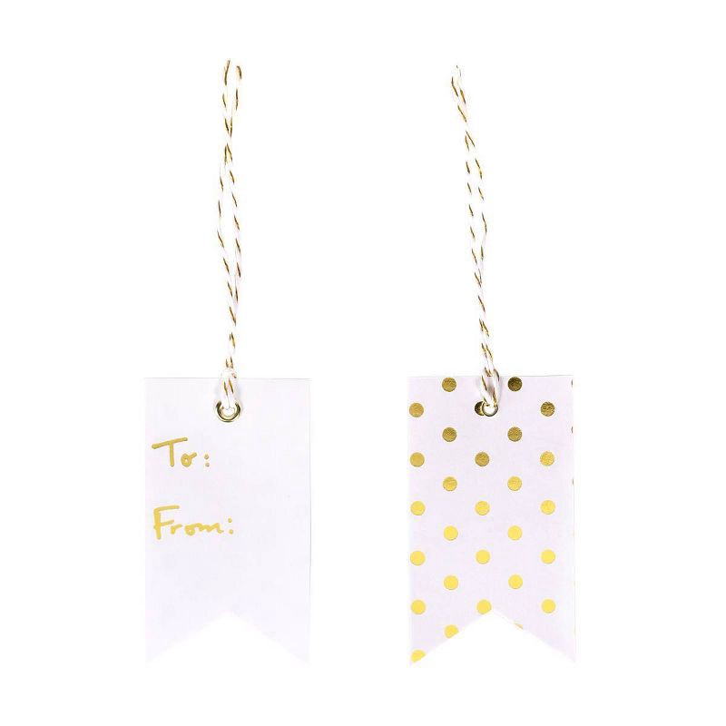 - White and gold tag works well with your wrapping paper, gift bags and more