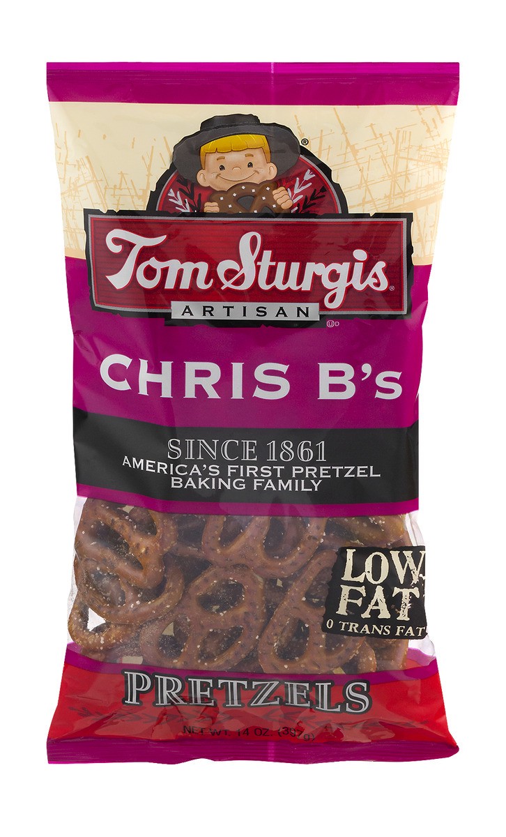 A crispy, crackly pretzel with extra salt and a funny name. Some of these pretzels are in the shape of a pretzel, and some are in the shape of the letter “B”. Both are crispy and delicious! The Sturgi…