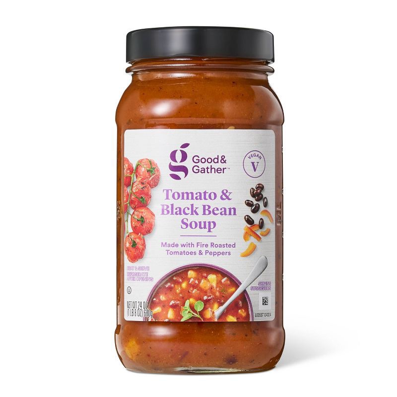 Serve a delicious vegan option at your next gathering with this Tomato and Black Bean Soup from Good & Gather™. Made with fire-roasted tomatoes, black beans and peppers, this hearty soup has no artifi…