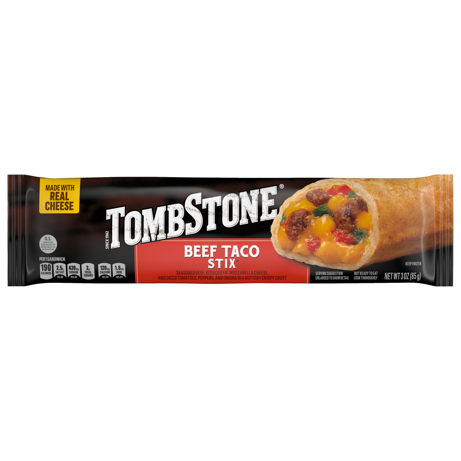 Tombstone Beef Taco Stix Frozen Snacks are a delicious way to beat hunger. These beef tacos are made with seasoned beef, reduced fat mozzarella cheese, diced tomatoes, peppers, and onions. All of thes…
