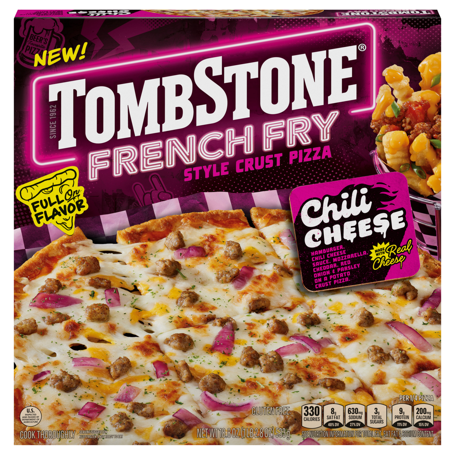 Meet the pizza-fry mashup you didn''t know you needed. Tombstone French Fry Style Crust Chili Cheese Pizza brings together everything you love —crispy potato fries, melty cheese, hamburger topping, an…