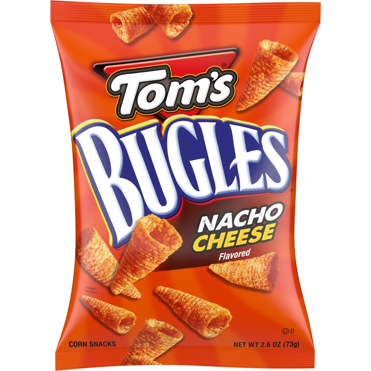 Get ready for a big blast of cheesy flavor goodness! Behind the irresistible crunch of Tom's Bugles corn snacks is a hearty punch of big cheese bang! Anytime Is Tom's Time.