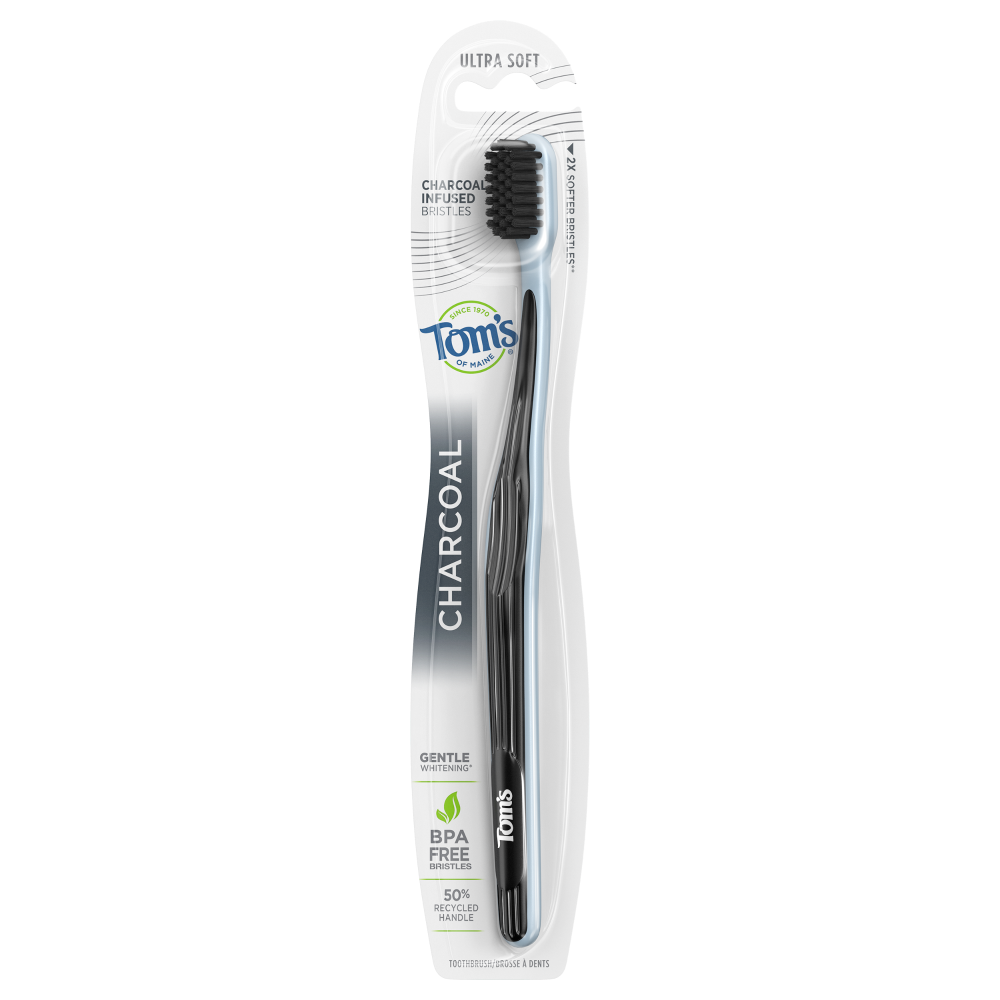 What's behind that confident smile? Tom's of Maine Gentle Charcoal Toothbrush. The charcoal-infused bristles are 2x softer than an ordinary flat trim toothbrush, so this ultra soft toothbrush can effe…