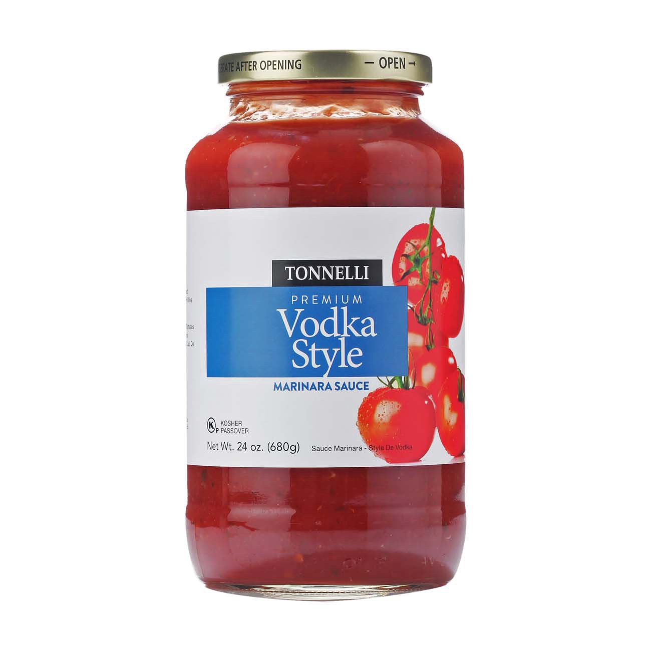 Tonelli Vodka Marinara Sauce is a premium authentic marinara sauce • Non-dairy • Gluten Free • Kosher for Passover • Kosher certified by the OK